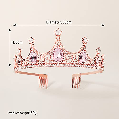 ✶ Tiara di cristallo per bambine con pettine: Corona di cristallo da principessa per bambini di dimensioni approssimative: 15cm*13cm*5cm. Colore: Principalmente in oro rosa e rosa;