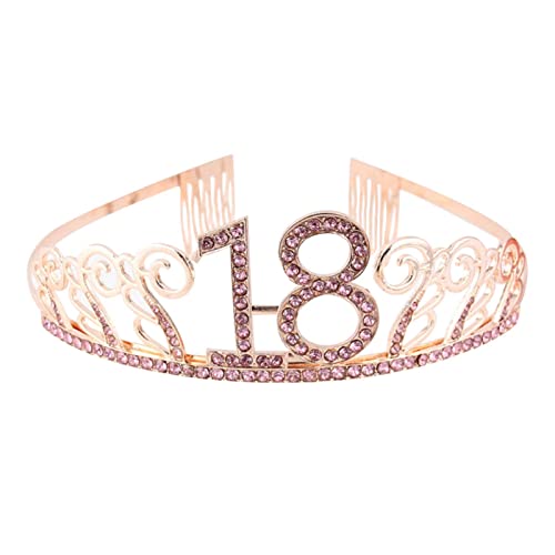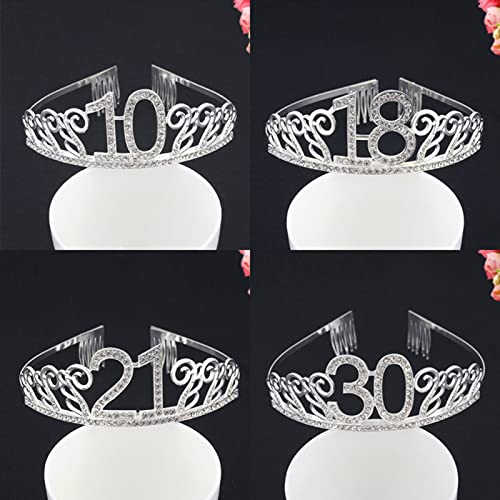Tiara Regina Corona di Compleanno, Corona Principessa per Donne e Ragazze, 10/18/21/30/40/50 Festa di Compleanno Tiara Strass Fascia Anello Capelli Corona Decor - Argento 18 Anni