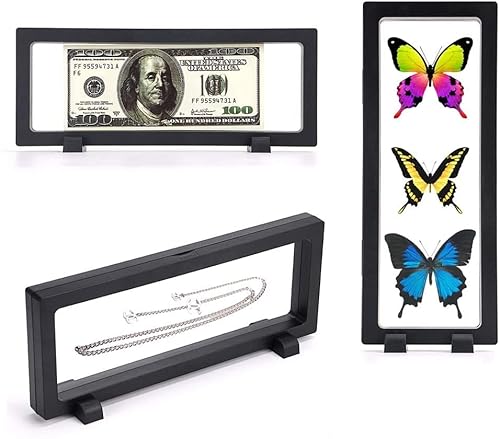Tiardey 2Pcs Espositore a Cornice Galleggiante 3D Display Box per Monete Gioielli Collana Orecchino Medaglioni Pietre Vetrina Gioielli Sospensione in Pet - 230 * 90mm Nero