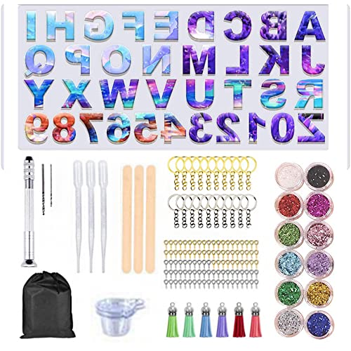 Tiardey 152 Pezzi stampi e Strumenti per colata in Silicone Set Lettere e Numeri Stampo in Resina stampi in Resina siliconica Fai da Te per Portachiavi Orecchini collane bracciali Ciondolo