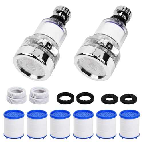 Tibapla filtri per rubinetto, 2pcs Filtro Per Acqua Del Rubinetto, Filtro del rubinetto ruotabile a 360°, Filtro Rubinetto con Filtro Lavabile, Filtro Lavandino Bagno per cucina e bagno, 3 Modalità