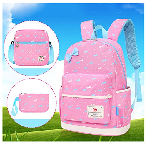 TIBES Zaino della scuola 3pcs Zaino ragazza Schoolbag Zaino scuola elementare Cartella bambina Borse scolastiche Zaino waterproof Rosa 1