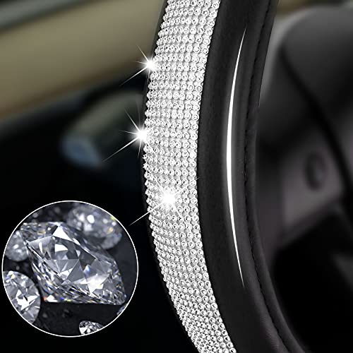 Tibimon Coprivolante per Auto Universale, Bling Scintillante Strass Pelle Coprivolante, Diamante Coprivolante, Volante Cover in Cristallo 37-38cm / 15" per Coprivolante Donna Auto Accessori (Nero)
