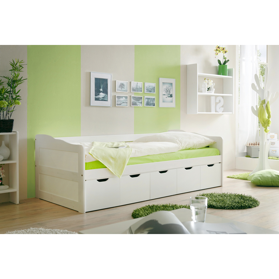 TICAA Divano letto MARIA con cassetti estraibili Questa variante del nostro divano letto possiede dei pratici cassetti estraibili. Per avere più posto in cui collocare oggetti e più ordine nella stanza! È anche possibile sostituire il cassetto con un letto estraibile. Dettagli: •