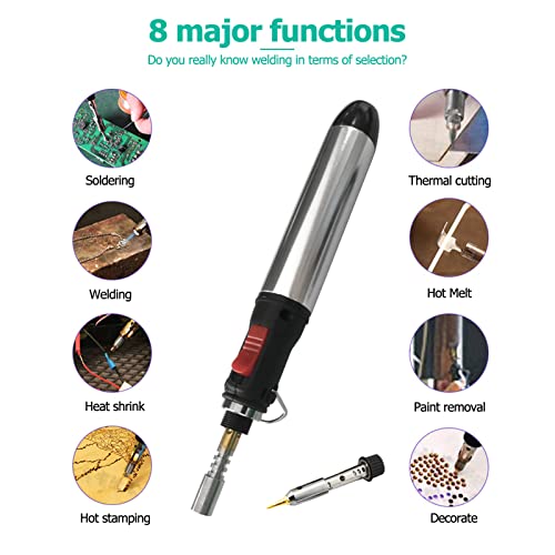 Ticfox 4 in 1 Kit penna per saldatore a gas butano cordless Strumento torcia per saldatura regolabile in temperatura