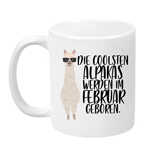 Ticker - Tazza di compleanno "Gli alpaca più cool nascono a febbraio", alta qualità, regali - alpaca - bianco (febbraio)