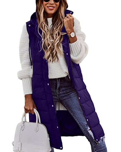 Ticticlily Giacche Donna Invernale senza Maniche Gilet di Piumino Lungo Trapuntato con Cappuccio Cappotto Giubbotto Smanicato Autunno Outdoor Zip Vest per Donna A Beige M A Viola L