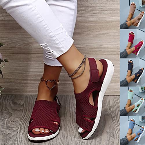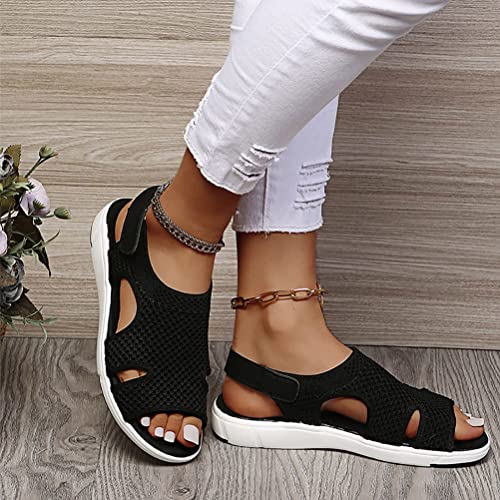 Ticticlily Sandali da Donna Estivo Comodo Sandali con Piatto Stile Vintage Elegante Velcro Scarpe da Tennis Leggere Elasticizzate A Nero 43 EU