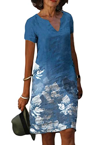 Ticticlily Vestiti Donna Estivi Primavera 2022 Abiti Midi Manica Corta Scollo V Vestito Corto Elegant Casuale Casa Abito Stampa Azzurro XXL