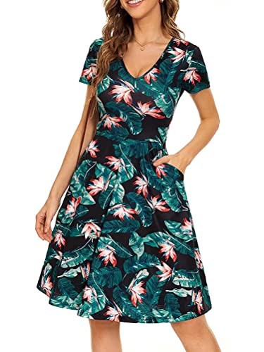 Ticticlily Vestiti Donna Estivi Primavera 2022 Abiti da Casa Midi Corti Abito Maniche Corte e Scollo V Vestito Corto con Tasche Elegante Casuale Stampa Verde S