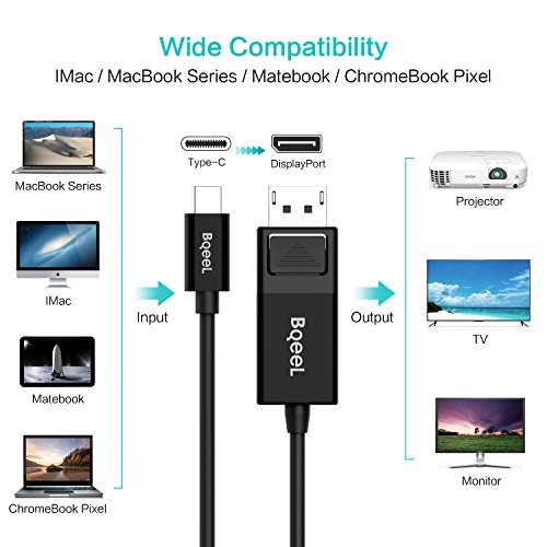 TICTID Cavo USB C a DisplayPort, Adattatore Tipo-C a DP ad alta definizione 4K @ 60Hz (Compatibile con Thunderbolt 3), per 2016/2017 MacBook Pro, MacBook, ChromeBook Pixel ecc (USB C a DisplayPort)