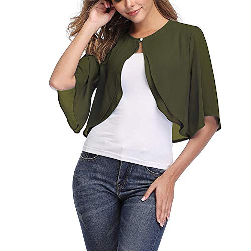 Tidecc - Coprispalle da donna, in chiffon a maniche corte, con apertura frontale Verde 14-16
