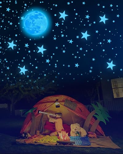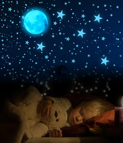 TIDEVAN 1139 Pezzi Stelle Fluorescenti Adesive Soffitto Adesivi,Luna Stelle Adesivi Murali Fluorescenti Bambini Decorazioni Parete Decorazioni Parete Stelle Luna Dots per Soggiorno Cameretta Bambino