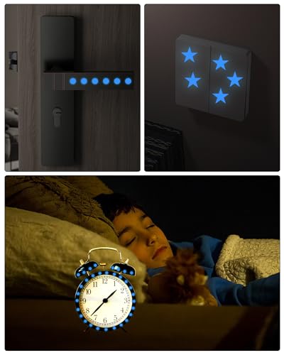 【Facile da applicare】Assicurarsi che il muro sia asciutto e pulito prima di applicare l'adesivo fluorescente. La buona qualità garantisce che non cada dal muro prima dell'uso, anche per tavoli, interruttori ecc. autoadesivo, non lascia segni quando viene rimosso. Adesivi da parete fluorescenti può essere applicato su qualsiasi superficie liscia e pulita come pareti, porte, finestre, armadi, ecc., ma non danneggerà il muro.