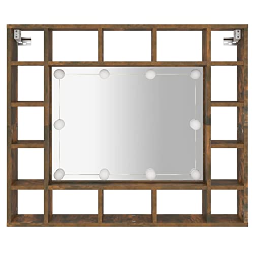 Tidyahrd Armadietto da Bagno,a Specchio,da Parete,con 16 Scomparti,Rovere Fumo,91x15x76,5 cm,Pensili Bagno,Mobile Specchio Bagno,Specchiera Bagno con Luce,Mobiletto Bagno con Specchio