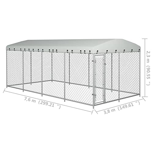Tidyard Canile,Gabbia,Box Cane,da Esterno,in Acciaio con Tetto,Gabbia Grande Cani Acciaio,760x380x230 cm,Gabbia per Cani Taglia Grande,Box Cani Esterno,Recinti per Cani,Recinzione per Cani