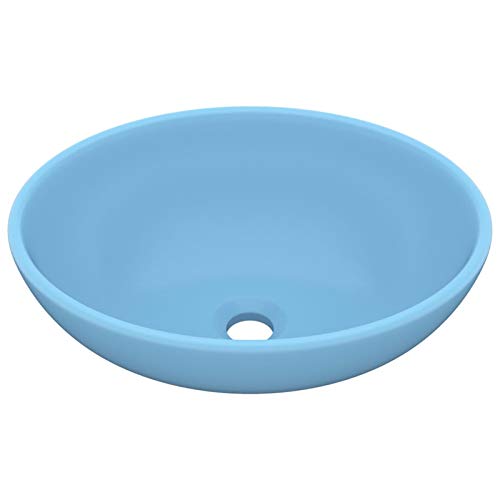 Tidyard Lavandino da Bagno Appoggio Design Ovale in Ceramica Azzurro/Blu Opaco,Lavandino d'Appoggio,Lavandino Ovale,Lavandino Design 400x330x135 mm