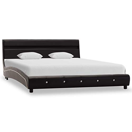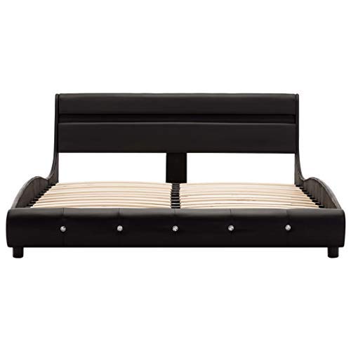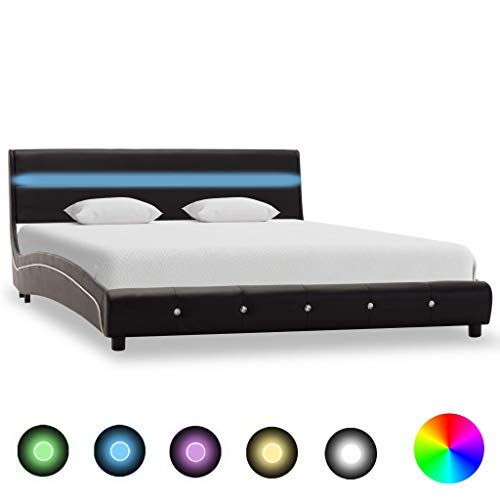 Tidyard Letto Matrimoniale Nero con LED Moderno in Similpelle, Giroletto Matrimoniale, Telaio in MDF, 120x200 cm