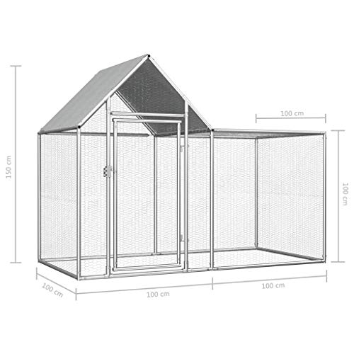 Tidyard Pollaio per Galline da Esterno, Pollaio Casetta per Galline, Gabbia da Esterno con Tetto Impermeabil, in Acciaio Zincato 2x1x1,5 m