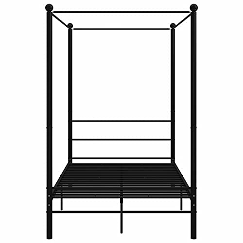 Tidyard Struttura Letto,Singolo,a Baldacchino,in Metallo,Nero,con Doghe,120x200 cm,Giroletto Singolo con Baldacchino in Metallo,Letto Metallo,Letto con Tetto,Letto con Doghe,Letto Una Piazza e Mezza