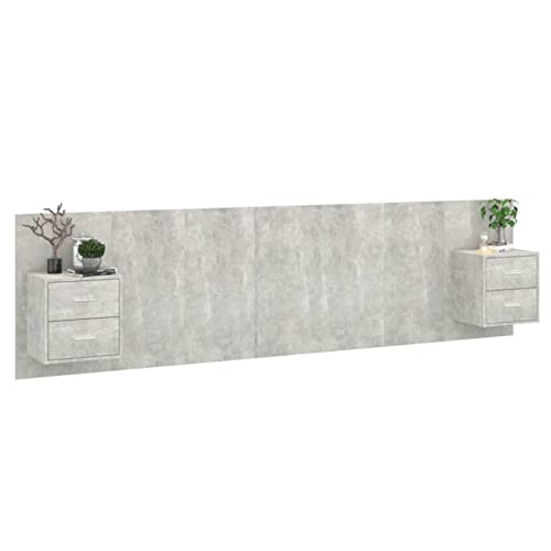 Tidyard Testiera per Letto con Comodini in Legno Multistrato Grigio Cemento,Testiera e Comodini,Testiera Letto Singolo/Testiera Letto Matrimoniale,Testata Singolo con Comodini Comodino Pensile