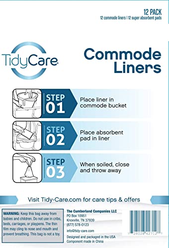 TidyCare Bedside Commode Liners and Absorbent Pads for Portable Toilet Chair Bucket and Bedpan | Combo Pack of 12 Disposable Waste Bags and 12 Pads | Universal Fit Portable Toilet Liners and Pads