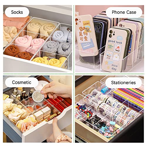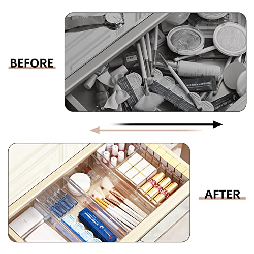 【Ampio Utilizzo】 Le nostre organizer trucchi cassetti possono aiutarti a ordinare gli oggetti e sfruttare al massimo il tuo spazio, che si tratti di una scatola di immagazzinaggio desktop o di un divisorio per cassetti, è un'ottima scelta. Può contenere cosmetici, gioielli, cancelleria, custodie per cellulari, ecc. e ogni piccolo oggetto può essere ordinato e organizzato a colpo d'occhio, permettendo loro di trovare la propria casa.