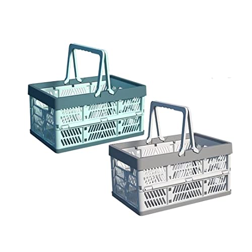 Tielag Cassetta pieghevole piccola in plastica, pieghevole, stabile, impilabile, mini scatola pieghevole per scaffali, camera da letto, bagno, ufficio, 38 x 25 x 20 cm, Blu E Bianco.