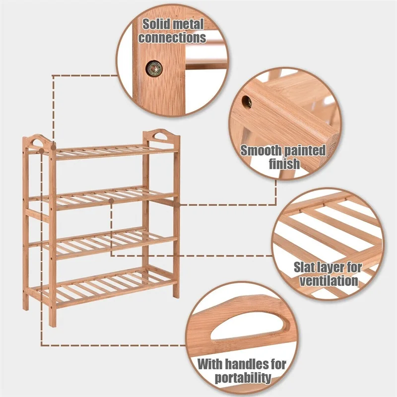 4 Tier Bamboo Shoe Shelf Storage Organizer Modern High Quality Shoes Rack HW52610