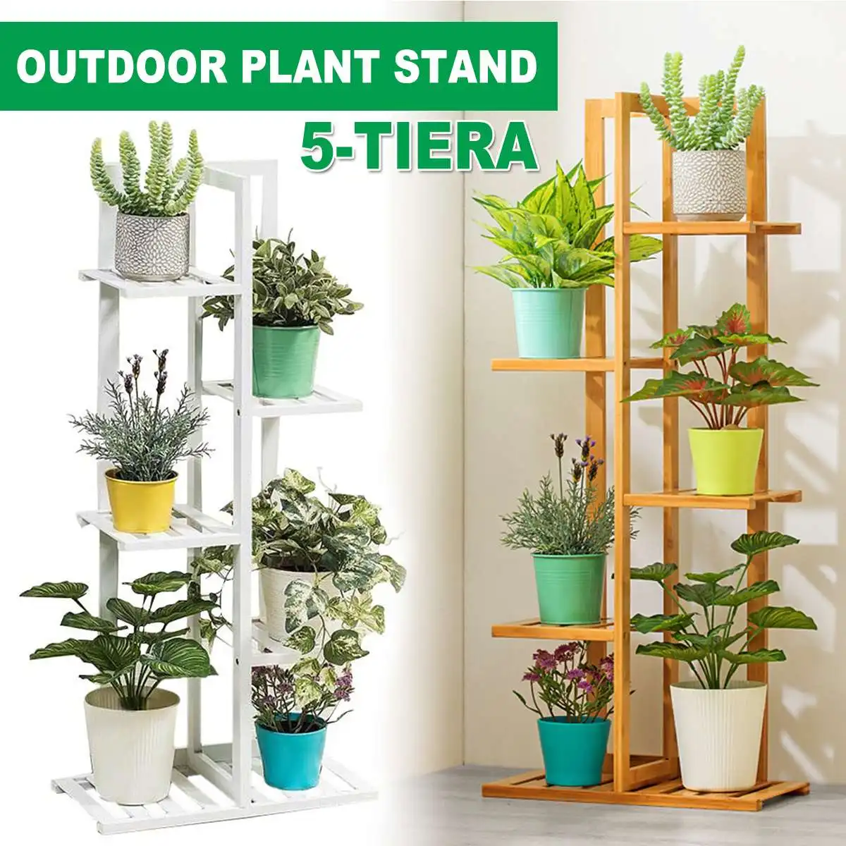 5 Tier Floor Simple Flower Pot Rack Bamboo Balcony Sitting Room Flower Plant Display Stand Indoor Plant Stand