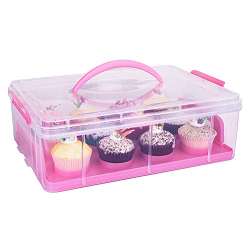 3 Tiers Cake Carriers Adjustable Snap and Stack Cupcake Holder Container (rosa)