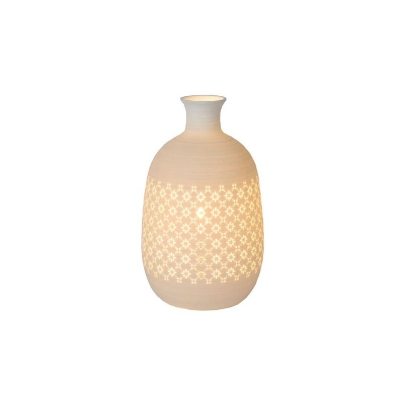 Produttore: Lucide Nome: TIESSES simbolo: 13534/26/31 Parametri altezza (mm): 263 altezza paralume (mm): diametro (mm): 154 diametro paralume (mm): larghezza (mm): profondità (mm): numero di sorgenti: 1 tipo di paralume: E14 max sorgenti di alimentazione: 40Voltaggio: 230V Sorgente inclusa: NessunaDimmerabile: Non colore: biancomateriale: porcellanaIP: 20