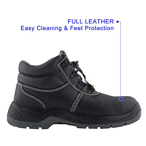 TIESTRA Scarpe da Lavoro in Pelle Alte Uomo Scarpe Antinfortunistiche Impermeabili S3 SRC EU41-47 scarponi da Neve Uomo Nere