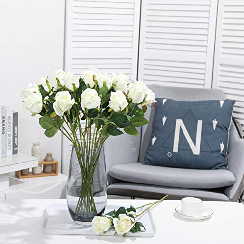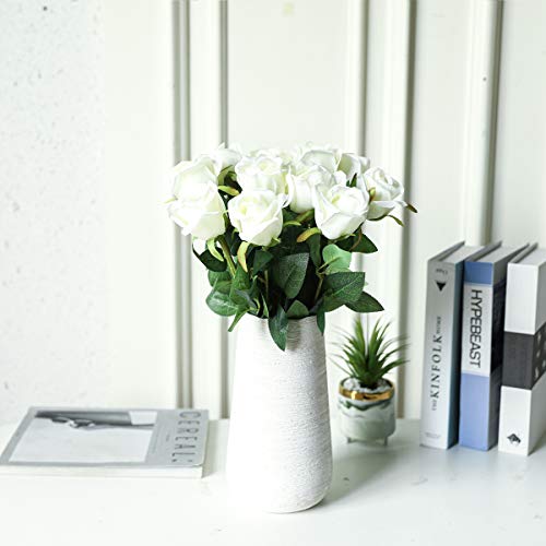 Tifuly Fiori artificiali, 12 pezzi a stelo singolo lungo finti fiori di seta di rose finte bouquet da sposa realistici per matrimoni, casa, decorazione da tavolo centrotavola (boccioli rose, bianco)