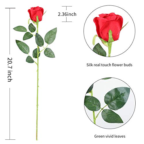 Tifuly Fiori artificiali, 12 rose finte a stelo lungo, in seta, bouquet da sposa, fiori realistici, per matrimoni, feste, casa, decorazione da tavolo, centrotavola (bocciolo, rosse)