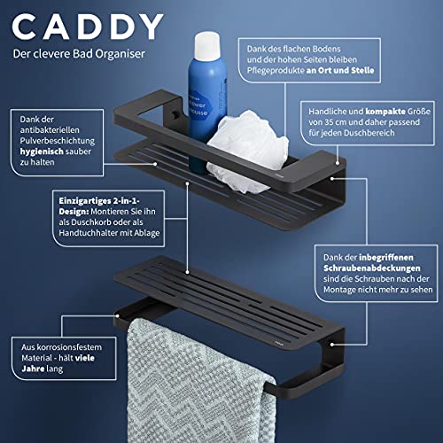 Tiger Caddy Cestello Doccia/Porta Salviette, Nero, Acciaio Inossidabile, BxHxT: 35 x 7 x 10,6 cm