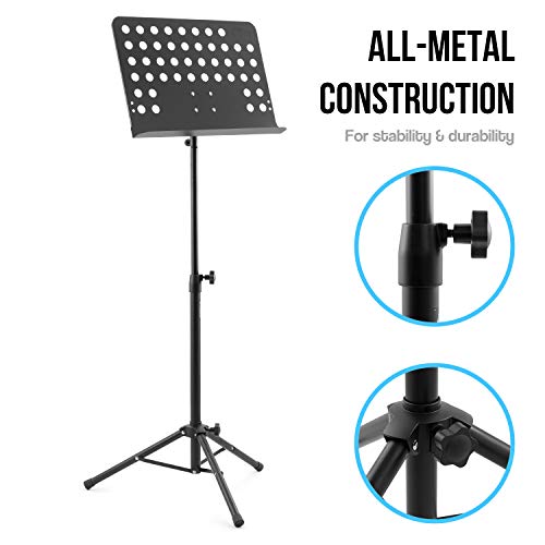 TIGER MUS7-BG Leggio musicale robusto in metallo per scuole, orchestre e cori - con custodia - colore nero