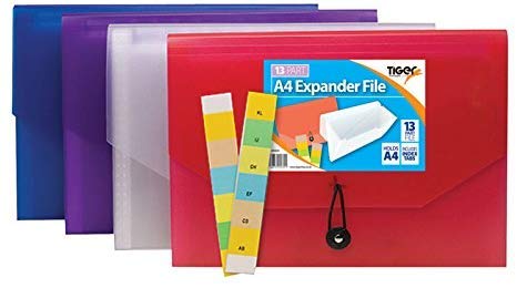 2 x Tiger 13 parti A4 estensione file con chiusura elastica, colori assortiti x 1 singolo