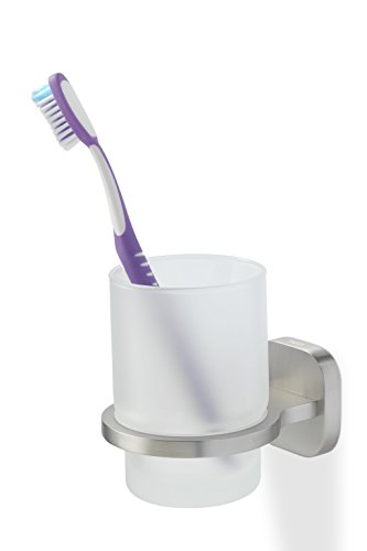 Tiger Ramos Supporto per Portaspazzolino, Zamak, Acciaio Inox Spazzolato, 7,7x9,6x10,4 cm
