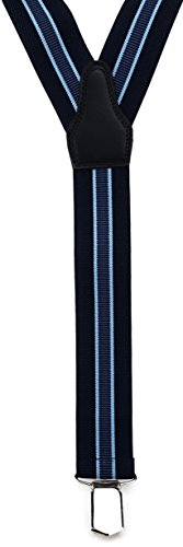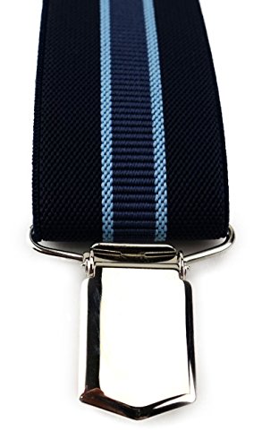 TigerTie Bretelle unisex a Y con 3 clip extra forti, motivo a righe, lavorazione di alta qualità, larghezza 35 mm, blu scuro, azzurro, Taglia unica