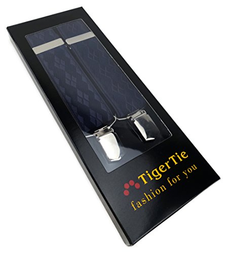 TigerTie Bretelle unisex a Y con 3 clip, molto robuste, a quadretti colorati, prodotto di alta qualità, da 35 mm di larghezza, blu scuro., Taglia unica