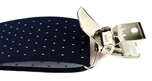 TigerTie - Bretelle unisex a Y con 3 clip molto robuste, a pois, lavorazione di alta qualità, larghezza 35 mm blu scuro, argento marino. Taglia unica