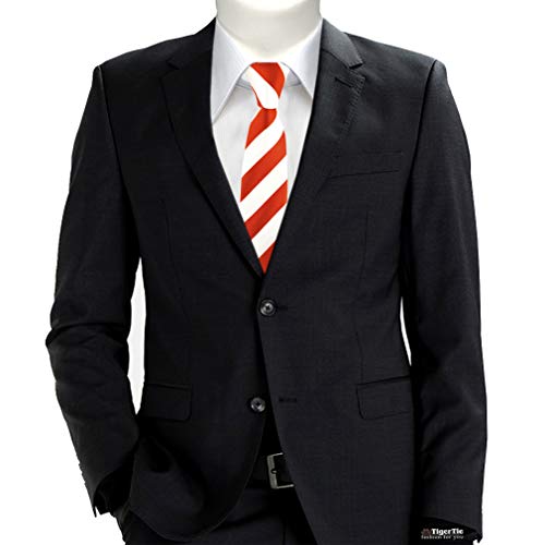 TigerTie - Cravatta di design sottile a righe Arancione/Bianco Taglia unica