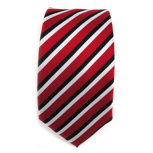 TigerTie - Cravatta moda stretto - rosso carminio nero bianco striato