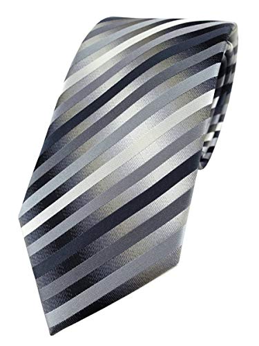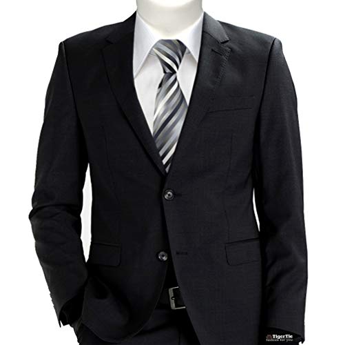 TigerTie Cravatta in seta di design, colore: antracite, argento, grigio a righe