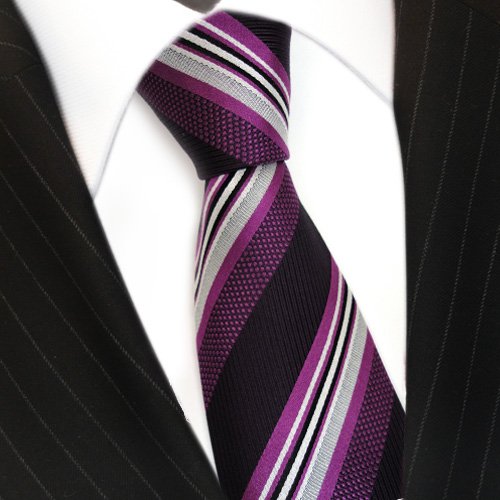 TigerTie Cravatta di seta a righe - Larghezza cravatta 8 cm viola, argento, bianco, nero Taglia unica