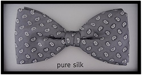 TigerTie papillon di seta - grigio argento Paisley lavorato - papillon di seta + box
