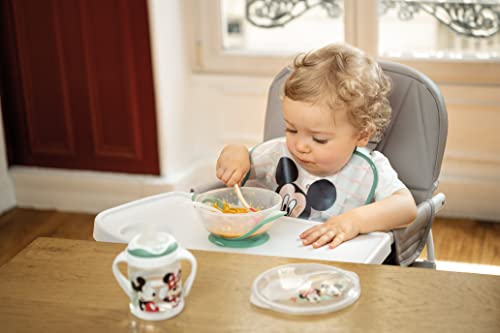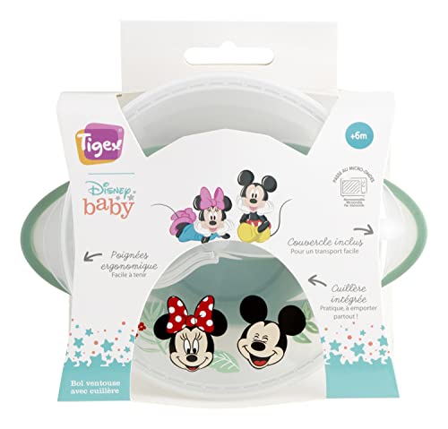Tigex Ciotola a ventosa per bambini, con coperchio e cucchiaio, compatibile con microonde e lavastoviglie, Disney Mickey Mouse, trasparente