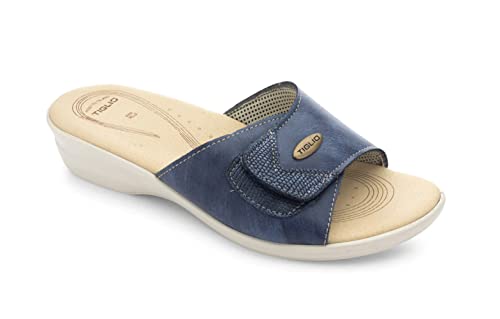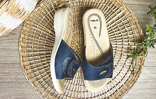 TIGLIO Venezia Art. 184 - Ciabatta donna Comfort estate - Sottopiede imbottito in Vera pelle - Tomaia regolabile con velcro blu 38