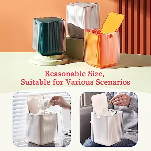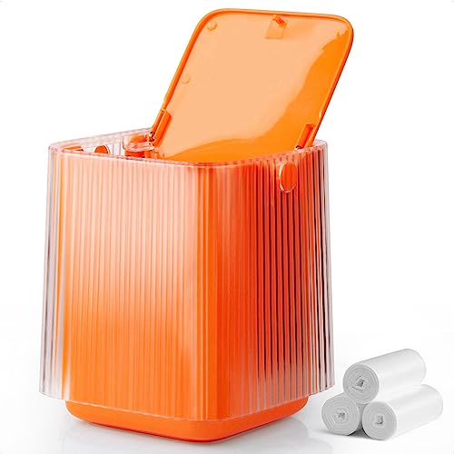 TIGOADT Mini Cestino da Tavolo con Coperchio con Sacco per Rifiuti da 90 pezzi,Piccolo Cestini Spazzatura Elegante Pattumiera da Tavolo per Bagno Scrivania Ufficio Auto e Cucina(14×14×17cm,Arancione)